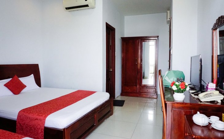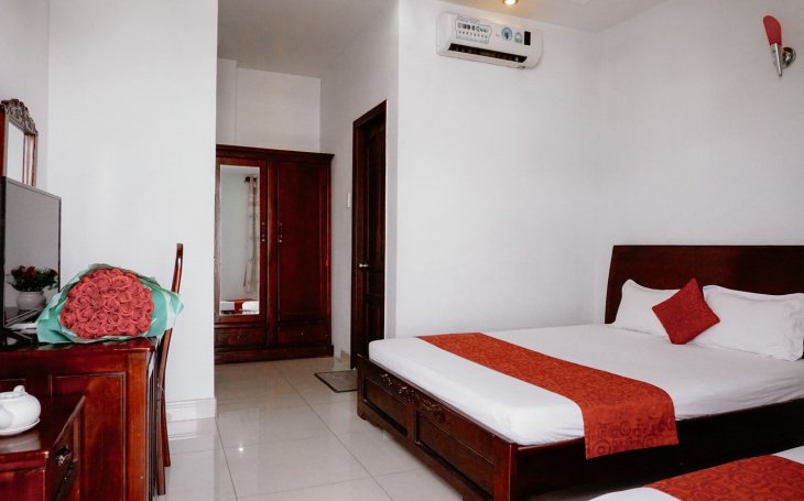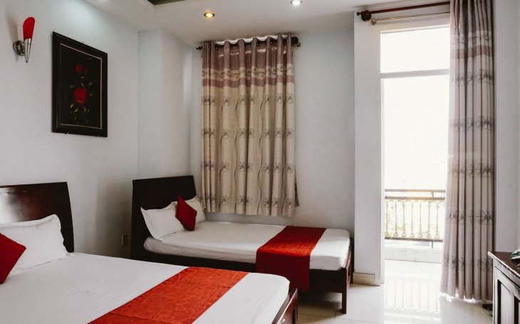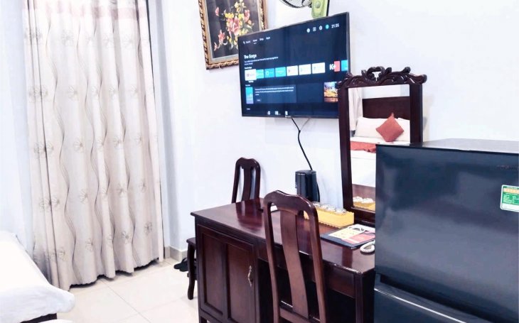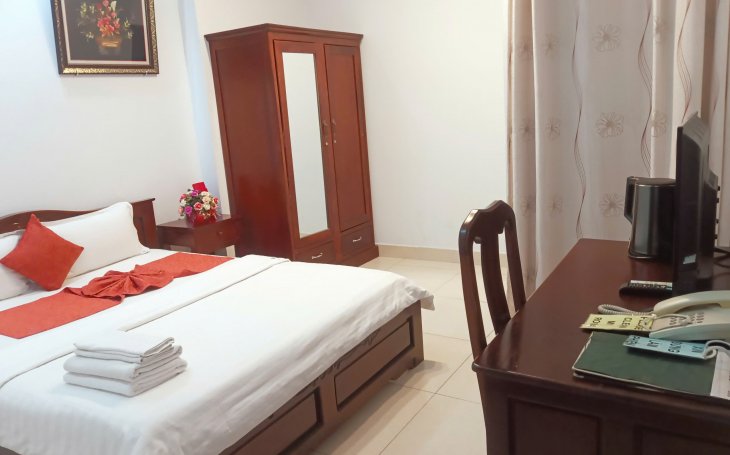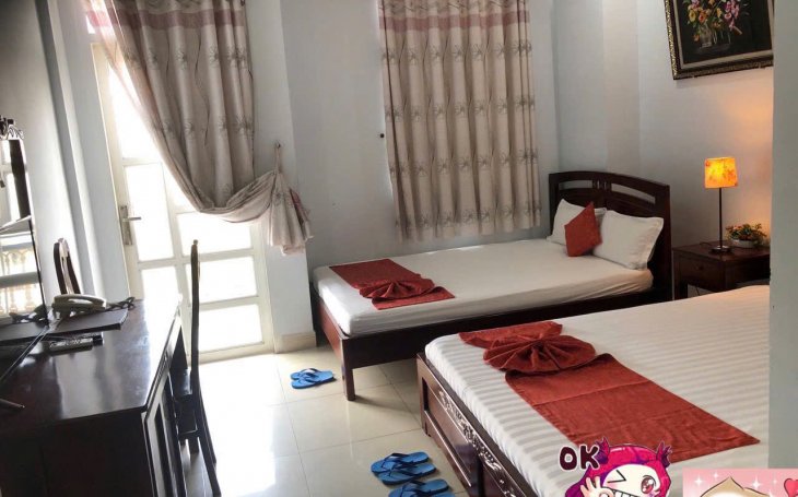 Khách Sạn Quận 7 giá rẻ 350.000 một phòng gồm 2 người ở, loại phòng không có ban công, view hướng hành lang, có 1 cửa sổ nhỏ, phòng ấm cũng...